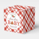 Send guests home with a slice of thanks using these “Slice Slice Baby” pizza-themed baby shower favor boxes! Featuring fun pizza graphics, bold red accents, and playful script, these boxes are perfect for small treats or keepsakes at your co-ed or couples shower. A fun way to tie your food-themed baby shower together. Personalize with a thank-you message or the parents' names.