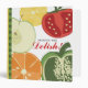 Cool, colorful sliced fruits and vegetables recipe cookbook notebook binder for general cooking and baking recipes collections, or a great business binder for personal or private chefs, or food journals or portfolios. Sliced tomato, lemon, apple, orange, and bell pepper.