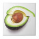 A ripe Avocado sliced open showing the seed and the different shades of green on a white background