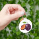 This design is a slice open plum. The plum has been cut in half and looks delicious. This sliced open plum design looks great on this Keychain