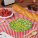 A pattern of sliced green pickles covers these plates. Perfect for your next party or summer BBQ!
