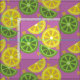 A lighter purple fabric with the pattern of colorful sliced and quartered lemons and limes . Make sure to choose the type of fabric that fits your project best .