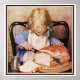 This painting is titled 'Slicing Bread' by Jessie Willcox Smith (1863 – 1935), an illustrator during the Golden Age of American illustration. She was considered 'one of the greatest pure illustrators'.