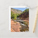 A postcard of the beautiful Sliding Rock state Park near Sodona, Az, featuring its amazing mountains, bed rock, and clear flowing creek.