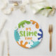 It's Slime Time! Birthday party plates with blue, green and orange slime