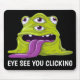 Add a touch of fun to your workspace with this quirky mouse pad featuring a slimy monster with a few eyes, ready to keep an "eye" on your every click. The playful design, combined with the phrase "Eye See You Clicking" makes this mouse pad a perfect blend of humor and functionality. Whether you're at work or gaming, this unique accessory is sure to bring a smile to your face and keep your desk looking cool.