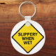 A humorously misapplied sign: Slippery When Wet, available on a range of clothing and gifts!