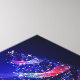 SlipperyJoe Christmas tree digital translucent red green blue ribbons glowing with festive energy concentric blue lights circles outward ethereal almost holographic presence radiant lights and sparkles artistic deep blue background gay pride gifts magical atmosphere emits beams trails of light LGBTQIA movement and flow