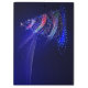 SlipperyJoe Christmas tree digital translucent red green blue ribbons glowing with festive energy concentric blue lights circles outward ethereal almost holographic presence radiant lights and sparkles artistic deep blue background gay pride gifts magical atmosphere emits beams trails of light LGBTQIA movement and flow