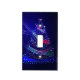 SlipperyJoe Christmas tree digital translucent red green blue ribbons glowing with festive energy concentric blue lights circles outward ethereal almost holographic presence radiant lights and sparkles artistic deep blue background gay pride gifts magical atmosphere emits beams trails of light LGBTQIA movement and flow