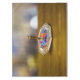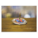 SlipperyJoe Hanukkah dreidel gift octagonal base bursts vivid colors Jewish folk art symbolic motifs blue red purple geometric patterns vibrant artistic take holiday tradition beautifully crafted top metallic finish blurred background festive dreamy atmosphere high-level detail ceremonial collectible value single decorative ornate spinning toy warm wood beneath earthy contrast craftsmanship color cultural pride celebration evokes reverence joy ritual artistry