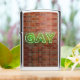 SlipperyJoe illuminated gay neon sign bright vivid electric green lights letters mounted reddish-brown brick wall gay pride gifts identity celebration LGBTQIA urban industrial look celebration love identity community live your truth visibility power vibrant glow contrasts textured backdrop sleek electric curves artistic casting lively aura