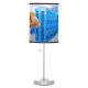 I have purchased other similar lamps. I use them as extra light for guest's. They are inexpensive, easy to assemble and good height for reading. I like that there are many pre-made shades to choose from and that, like this one, you can use your own art.