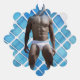 SlipperyJoe muscular man six-pack abs male white underwear grid blue white diamond-shaped tiles modern digital surface background realm artistic abstraction gay pride gifts LGBTQIA flesh and pixels collide unreal dreamscape fusion unique visuals bold design