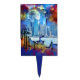 SlipperyJoe NYC graffiti moon surrounded swirling Cake Topper