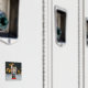 SlipperyJoe's Christmas classic nutcracker ornament black soldier hat white jacket yellow detailing bright red accents blue trousers soft white faux-fur trims clean modern holiday aesthetic circular bokeh warm luminous orbs magical and atmospheric LGBTQIA gifts amber lights halo effect hangs suspended thin gold cord rich dark softly blurred background authentic charm holiday character adding depth luxurious glow nostalgia craftsmanship
