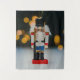 slipperyjoe christmas classic nutcrackerblack soldier hatwhite jacket yellow detailingbright red accents blue trouserssoft white faux fur trimsclean modern holiday aestheticcircular bokeh warm luminous orbsmagical and atmospheric lgbtqia giftsamber lights halo effecthangs suspended thin gold cord