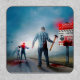 SlipperyJoe's happy Halloween glowing eyes zombies outbreak quarantine sign male survivor figure stands foreground infection gas mask airplanes ground splattered bloodstains mysterious figures post-apocalyptic zombie-infected world armed with sledgehammer for combat artistic dark stormy sky desolate landscape LGBTQIA gay pride gifts