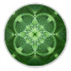 SlipperyJoe's Saint Patrick's Day glowing four leaf clover shape luminous almost kaleidoscopic appearance Irish LGBTQIA gifts symmetrical mandala like shamrock pattern deep emerald forest lime tones geometric grid interlocking circles diamonds rich vibrant green abstract design artistic layered translucent petals center radiates outward intricate fractals gradients fine linework add texture modern ornate depth dimension festive elegant visually hypnotic