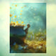 SlipperyJoe's Saint Patrick's Day large ornate pot gold coins fantasy treasure folklore bokeh effects magical atmosphere tall lush grassy area vibrant color small flowers plants misty blue dreamy background artistic light particles dynamic motion LGBTQIA gay pride gifts