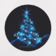 SlipperyJoe's stylized glowing Christmas tree bright blue lights star shapes bursts emit radiant illumination flares artistic sparkling electric appearance brilliant starburst acts topper festive holiday LGBTQIA gifts soft aqua wave like foundation modern magical high energy design triangular shape form digital aesthetic black background