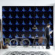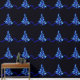 SlipperyJoe's stylized glowing Christmas tree bright blue lights star shapes bursts emit radiant illumination flares artistic sparkling electric appearance brilliant starburst acts topper festive holiday LGBTQIA gifts soft aqua wave like foundation modern magical high energy design triangular shape form digital aesthetic black background