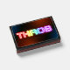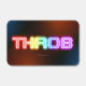 SlipperyJoe's throb rainbow-like gradient thick capitalized letters dotted texture filling blurred blue orange red hues swirls intensifying visual impact neon dreamscape ambient lighting psychedelic neon signage art gay pride gifts edgy branding LGBTQIA hypnotic design artistic charged word choice