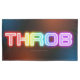 SlipperyJoe's throb rainbow-like gradient thick capitalized letters dotted texture filling blurred blue orange red hues swirls intensifying visual impact neon dreamscape ambient lighting psychedelic neon signage art gay pride gifts edgy branding LGBTQIA hypnotic design artistic charged word choice