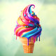 SlipperyJoe's vibrant ice cream cone food classic waffle cone base dessert exudes energy happiness swirling mix of rainbow hues delicious various colors sprinkles glossy slightly melted appearance deliciously indulgent texture gay pride gifts LGBTQIA bright pink lively orange sunny yellow rich blue deep purple artistic cheerful inviting vibe