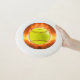 SlipperyJoe's yellow softball fireball flames raspberry windmill dinger snow coning background fiery solar-flare explosion swirling orange red gold bursts raw athletic energy cosmic art big bang moment genesis LGBTQIA unstoppable momentum artistic raw velocity of pitch dramatic symbolic gay pride gifts bold red stitching
