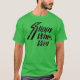 My 11 yo wore adult XL (5’7” 165#). The 8yo is small framed. She wore adult small and tied it in the back. Grandma wore adult large with long sleeve shirt underneath. Tall girl adult medium. Dark haired male adult large. Good quality dark Heather gray, Gildan brand shirt. -it was next up from basic choice and cost about $20 per shirt. Not too thick or thin. Washed and dried well, no major shrinkage. Not see-through. Can wear a bra under it fine. Screen print is just as shown and well done, front and back.