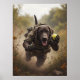 The Field Fetch Specialist is on the front lines of fun, diving behind cover in full camouflage gear. One paw grips a grenade, the other holds a slobbery tennis ball—because no mission is complete without a game of fetch. His focused eyes and wagging tail say it all: playtime is serious business. Ideal for fans of military humor, loyal labs, and action-packed dog adventures.