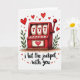 This cute and funny Valentine's Day card shows a red slot machine as the main focus, sitting on a small brown base. The three reels line up as “777,” and there’s a pink heart in the middle panel that makes the whole scene feel romantic instead of about money. Green leafy sprigs rise up on both sides of the machine, adding a gentle touch of nature. On the white background, small red and pink hearts float around like confetti, giving it a happy, affectionate mood ❤️. Near the bottom, the message reads “i hit the jackpot with you” in dark, handwritten-style script. The slot machine looks friendly and inviting, with soft shading that gives it a warm, hand-painted feel 💌🍫.