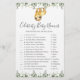 Sloth themed baby shower celebrity baby names game card features a watercolor sloth illustration and watercolor greenery eucalyptus garland and elegant handwritten style font.