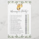 Sloth themed baby shower mommy or daddy game card features a watercolor sloth illustration and watercolor greenery eucalyptus garland and elegant handwritten style font.