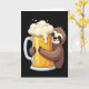 This St. Patrick's Day card features a sweet, cartoon-style sloth with soft brown fur hugging an oversized glass mug of amber beer like a close friend. Set against a solid black background, the sloth’s rosy cheeks and bright, happy eyes peek around the golden drink, giving the scene a cozy, buddy-like warmth 💚. Its small clawed hands curl around the handle and side of the mug, as if it doesn’t want to let go of the shared treat. The beer glows in warm honey tones, topped with a thick, creamy foam cap that swells near the rim, with a few bubbles rising through the liquid. Near the top, a short St. Patrick’s Day greeting appears in light green lettering, standing out crisply against the dark backdrop ☘️. The sloth’s slightly mischievous grin adds a flirty, friendly spark, like it’s inviting you in on a private joke over a festive drink. The center of the card is dominated by the sloth and the shining mug, with the black background framing them like a spotlight.