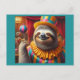 Introducing the Sloth Clown! With a colorful toy in hand and dressed in a vibrant yellow and blue striped top hat and ruffled collar, our sloth is ready to bring joy and laughter to your day. Set against the backdrop of a lively circus tent, this unique character adds a touch of whimsy to any occasion. Whether you’re looking for a fun addition to your collection or a one-of-a-kind gift, the Sloth Clown is sure to please. Step right up and join the fun with our Sloth Clown!