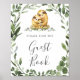 Give your guests a lovely direction with our sloth family guestbook sign, featuring watercolor greenery eucalyptus garland and elegant handwritten style font.