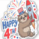 Sloth Happy 4th Rocket Fireworks USA Sticker