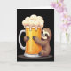 This card shows a cozy sloth in warm browns and cream hugging an oversized glass mug of golden beer, its relaxed face turned toward the drink like a fond friend. The background is deep black, making the sloth and mug stand out as the clear focus. The beer glows amber with small highlights, and there’s a thick cap of pale foam spilling down the sides in slow, creamy trails. Tiny droplets cling to the glass, giving it a chilled look that feels ready for a toast ☘️. The sloth’s claws spread gently across the mug as if holding someone close, adding a sweet, affectionate touch to the scene. Near the top, St. Patrick’s Day text sits centered in bright green, easy to spot against the dark backdrop 💚. The foam gathers in rounded peaks along the rim while a few glossy drips slide down the front of the mug.