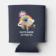 Can cooler with an illustration featuring a funny brown sloth happily lazing on a tree branch.