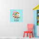 A colorful rainbow behind him along with a pink sun hovering over head. Cute, adorable and trendy.