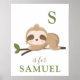 Personalized nursery art print featuring a cute sloth sleeping on a branch. Easy to edit with your baby name and initial!