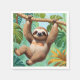 Sloth hanging on to a tree in a tropical jungle cartoon art