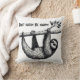 Black and white sketch drawing of a sloth hanging from a tree branch.