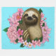A cute sloth sitting amongst pink flowers against a backdrop of blue