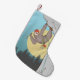 Perfect! Exactly what I ordered! I uploaded a picture of my blue chow, and the screen print was incredible. the back side of the stocking was the red and black checkered print. my puppy's name was also printed on the cuff of the stocking. PERFECT! Highly recommend this product! My puppy's name was screen printed onto the cuff of the stocking, the font was perfect!