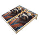 Natural Wood Cornhole Set, Red and Royal Blue bags