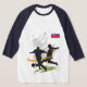 I bought the Men's Basic 3/4 Sleeve Raglan T-Shirt, White/Navy. It arrived on time for a gift and is of a great quality and fits perfectly! So cute! Zazzle has done it again! The printing was clear and filled in solidly.