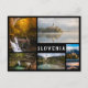 Collage postcard of various landscapes around Bled like Lake Bled, Lake Bohinj and Vintgar Gorge in Slovenia with a black frame and the text: 'Slovenia'.